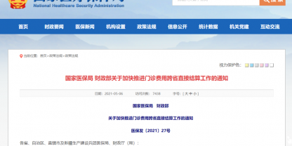 為了解決百姓門診費(fèi)用 跨省直接結(jié)算問題 國(guó)家醫(yī)保局、財(cái)政部下發(fā) 《關(guān)于加快推進(jìn)門診費(fèi)用 跨省直接結(jié)算工作的通知》